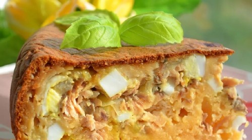 Geleitaart met ingeblikt voedsel en eieren doet denken aan grootmoeders vistaarten, waar we in onze kinderjaren op vakantie op werden getrakteerd. We hoeven echter niet vroeg op te staan om het deeg te kneden, alles gaat eenvoudig en snel. De vulling is eenvoudig, maar voedzaam en bevredigend, omdat vis en eieren veel eiwitten bevatten.