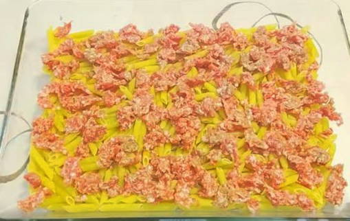 Ovenschotel met gehakt en kaas in de oven zonder pasta te koken