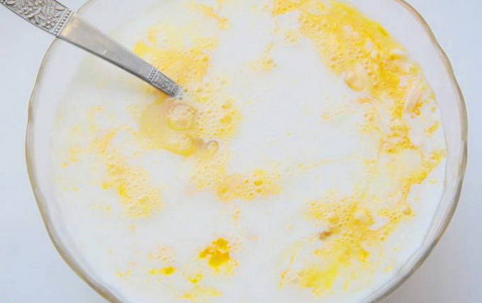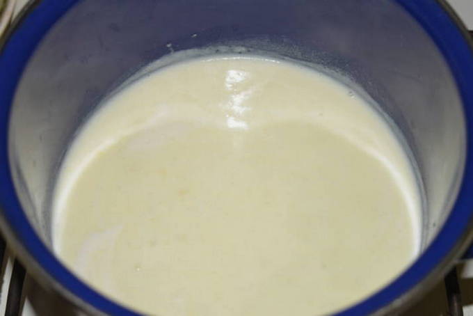 - Doe een stukje boter in een pan of schep en zet op laag vuur. Voeg bloem en zout toe als een deel van de olie is verwarmd. Meng goed en giet de melk erbij. Breng de massa aan de kook en roer af en toe. Als de saus dik is, kun je het vuur uitzetten.