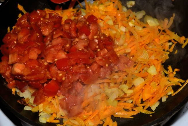 - We wassen en reinigen de wortels. We wrijven het met een grove rasp. Voeg ook toe aan het gehakt en meng. Laat nu sudderen tot de wortelen zacht zijn. De tomaten schillen: dit kan door ze een paar minuten in kokend water te leggen. Snijd in blokjes en voeg toe aan de pan. Roer goed en laat een paar minuten sudderen op laag vuur.