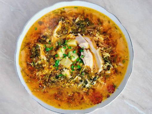 Hoe kook je heerlijke zuring borsjt in kippenbouillon met ei?