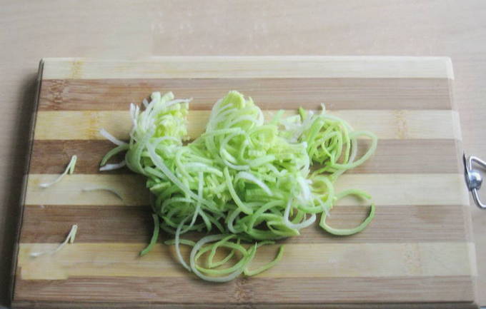 - Snijd ondertussen de prei in dunne ringen. Indien nodig kan deze worden vervangen door een gewone ui.