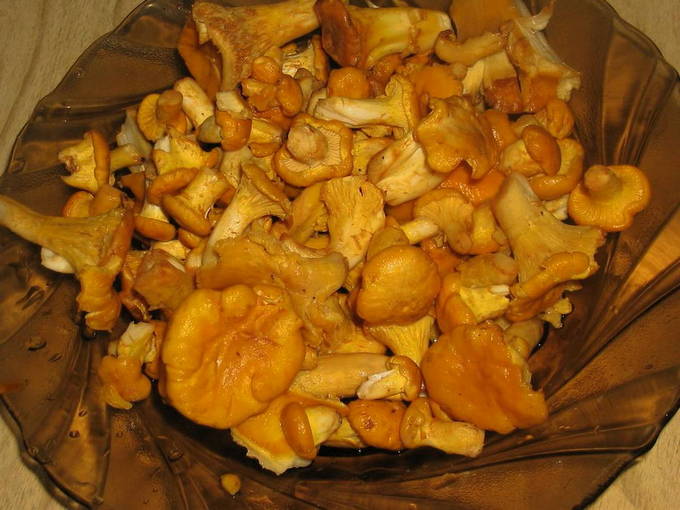 Cantharellen kunnen zowel vers als diepgevroren worden ingenomen. Bak de aardappelen apart met rossige stukjes. Bak in een andere pan de champignons, uien en zure room. Meng tot slot de gouden aardappelen en cantharellen met zure room. Delicaat, sappig gerecht blijkt. Bestrooi met geurige kruiden en geniet.