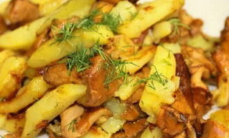 Wie houdt er niet van geurige zonnige cantharellen? Als je er veel hebt, prima, laten we dan een stevig gerecht met aardappelen maken op basis van deze paddenstoelen. Als er niet genoeg cantharellen zijn, voeg ze dan toe bij het bakken van aardappelen, het gerecht zal nog steeds veel smakelijker en smakelijker worden. Vergeet groen niet om de bosgeur af te zetten en kleur toe te voegen.