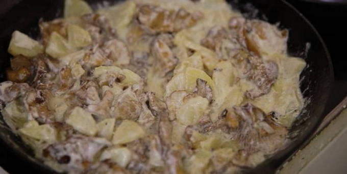 Hoe aardappelen met cantharellen in room te koken?