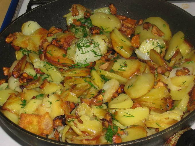 Hoe cantharellen met aardappelen heerlijk in een pan bakken?