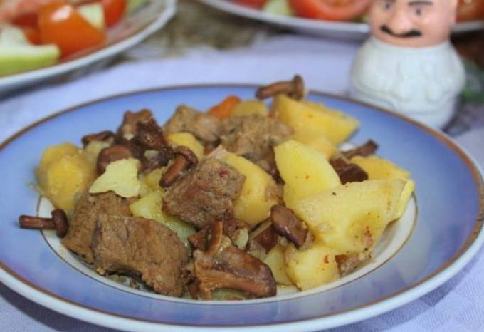Stapsgewijs recept voor het koken van cantharellen met vlees en aardappelen