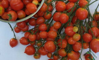 Eerst sorteren en spoelen we de tomaten. Het is raadzaam om sterke kleine vruchten te gebruiken.