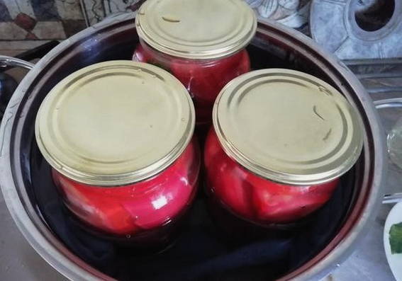 - Na de braadpan sturen we het product onmiddellijk naar een gesteriliseerde pot en vullen deze met het tijdens het frituren gevormde sap. We sluiten het af met een steriel deksel, wikkelen het in een handdoek en laten het afkoelen op een warme plaats en brengen het vervolgens over naar opslag op een donkere, koele plaats.