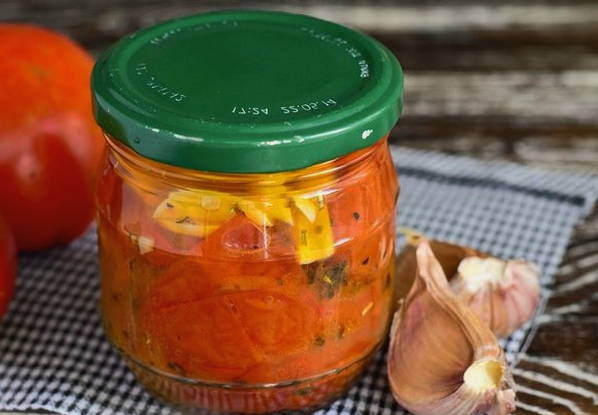 - We sluiten het werkstuk af met een deksel. Koel het af bij kamertemperatuur en bewaar het op een koele, donkere plaats. Gebakken tomaten met aromatische knoflook zijn klaar!