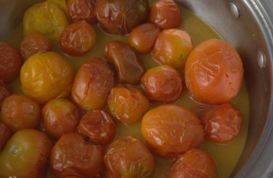 Doe de gebakken tomaten meteen in potten en vul ze met kokend water.