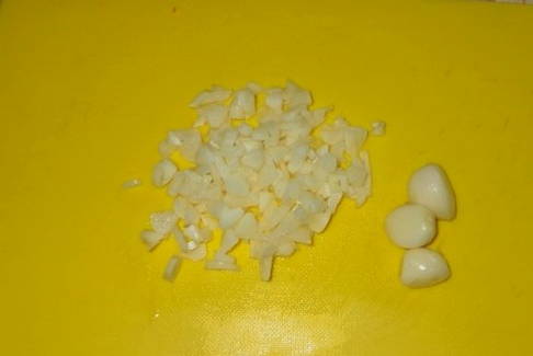 - Pel de knoflookteentjes en hak ze op een geschikte manier fijn.