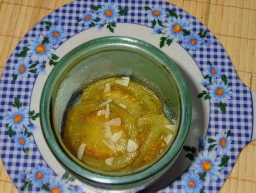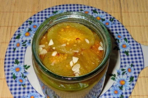 - Gebakken groene tomaten in een pot zijn klaar. Laat ze afkoelen en bewaar.