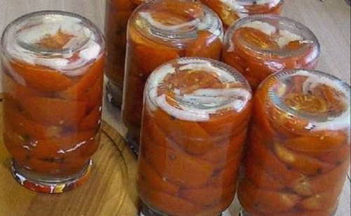 Tomaten gebakken in plakjes voor de winter "Je zult je vingers likken"