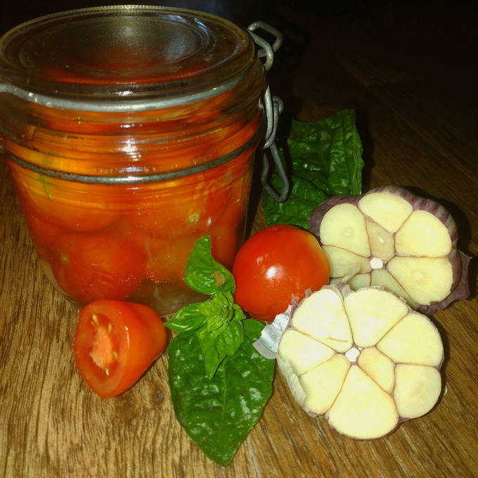 Hoe bereid je gefrituurde tomaten voor de winter met knoflook?