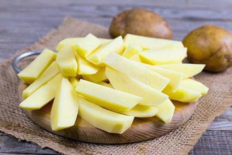 - Schil de aardappelen, was ze en snijd ze in plakjes van ongeveer dezelfde grootte.