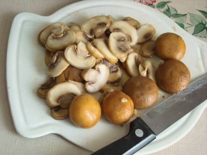 - Snijd de champignons in partjes.