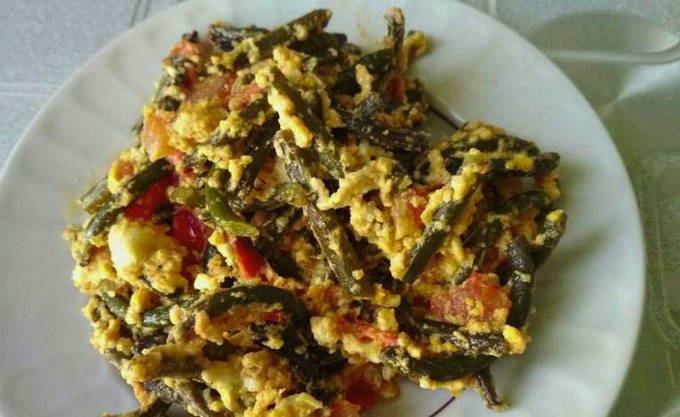 Een eenvoudig recept voor een gerecht dat op elk moment van de dag kan worden gekookt, is gebakken knoflookpijlen met een ei. Het gerecht kan warm en gekoeld geserveerd worden naast de hoofdgerechten vleesgerechten.