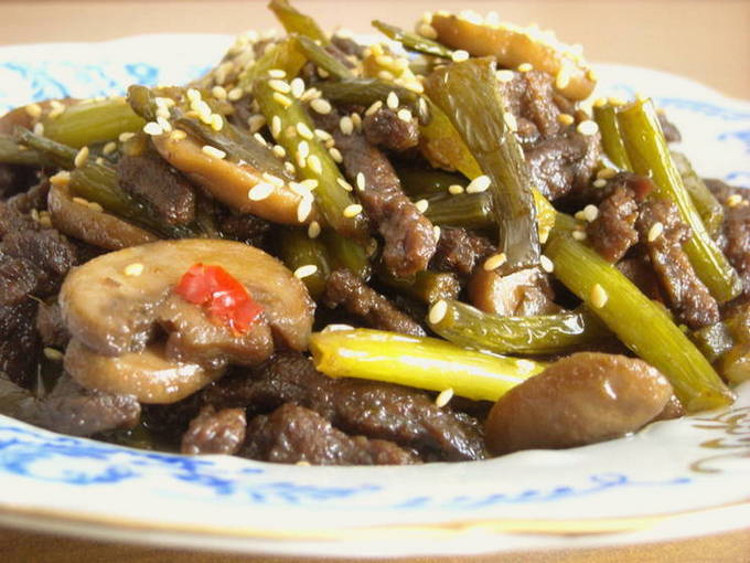 Hoe knoflookpijlen heerlijk koken met rundvlees?