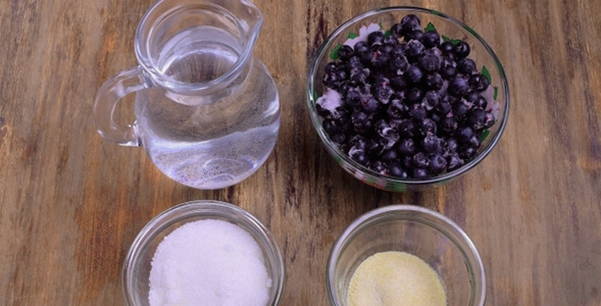 De belangrijkste ingrediënten voor het maken van bosbessengelei zijn bessen, suiker en gelatine. Tijd voor de voorbereiding kost ook niet veel, behalve de uithardingsperiode.