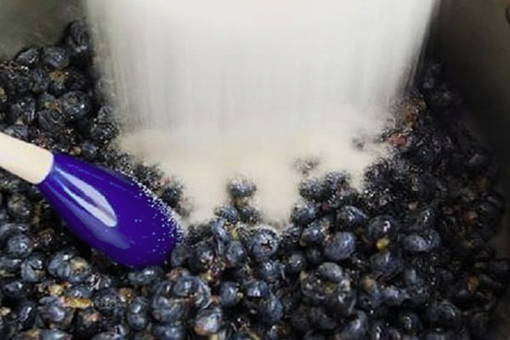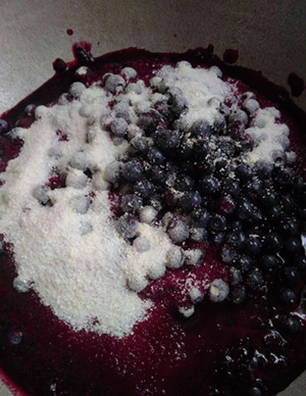 - Voeg suiker toe aan de bosbessen, roer.