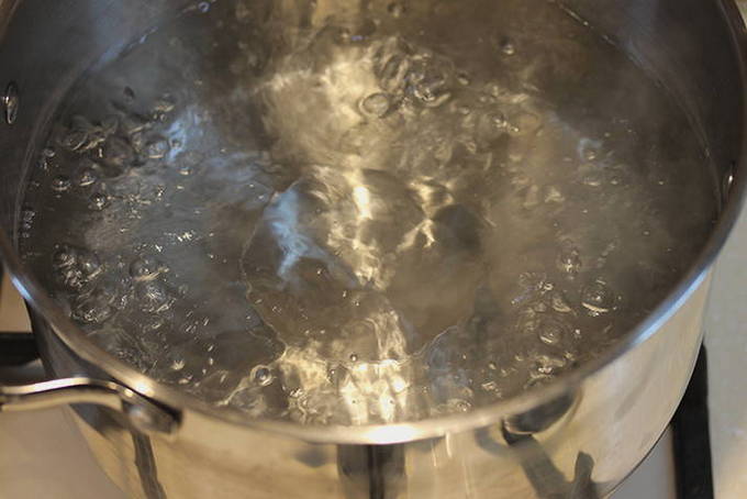 - Giet vervolgens de benodigde hoeveelheid water in de pan. Breng de inhoud aan de kook.