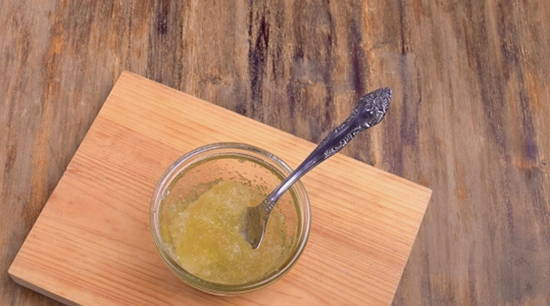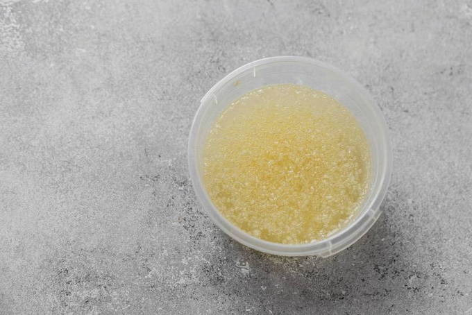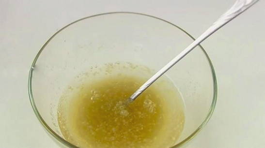 - Verdun agar-agar in een kleine hoeveelheid water. Laat het mengsel een paar minuten staan en giet het bij de totale massa. Roer voorzichtig.
