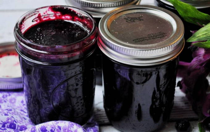 - Koel de dikke bosbessengelei en giet deze in gesteriliseerde potten. Zelfgemaakte bessen delicatesse is klaar!