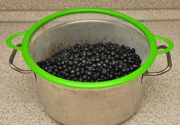 - We sorteren de bosbessen en spoelen ze zorgvuldig af. We gooien het product weg in een vergiet en laten het water volledig weglopen.