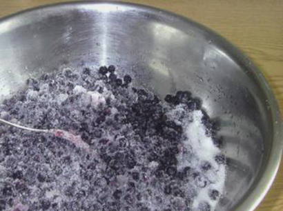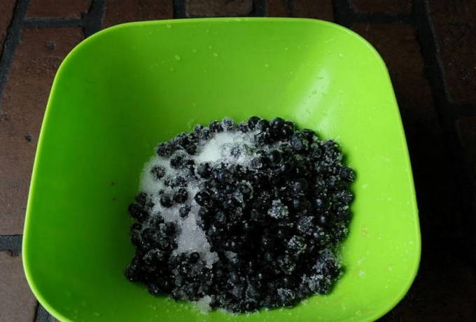- Was de bosbessen, doe ze in een vergiet en droog ze af. Meng de bessen met een mengsel van suiker en geelzucht.