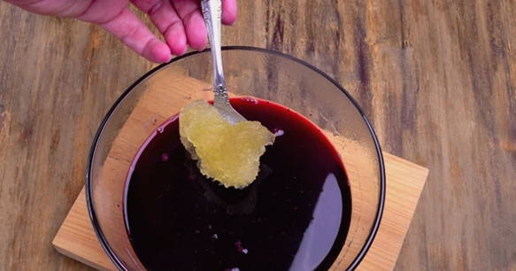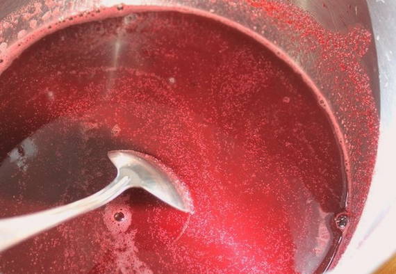 - Maal bosbessen, meng met water en suiker en zeef dit mengsel.