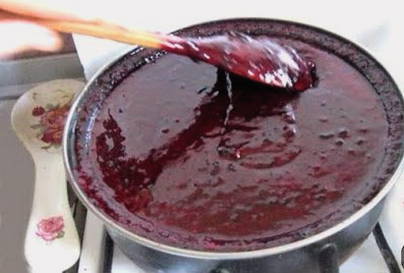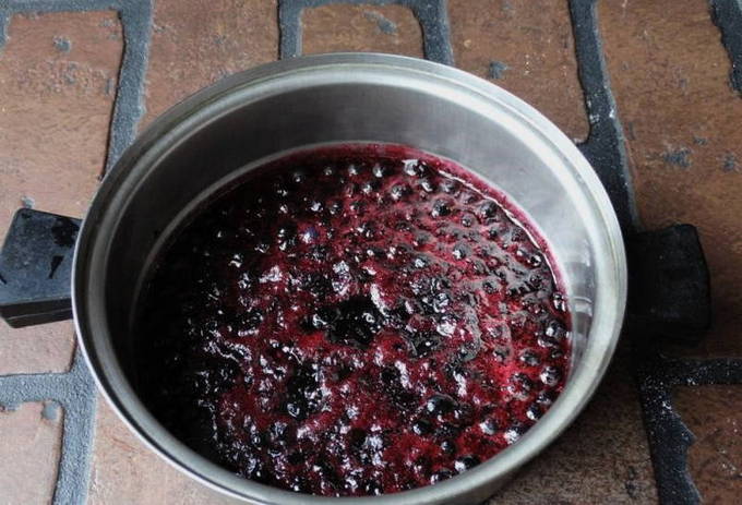 - Breng de inhoud van de pan aan de kook, kook gedurende 10 minuten. Zeef vervolgens de jam van de bessen door kaasdoek of een fijne zeef.