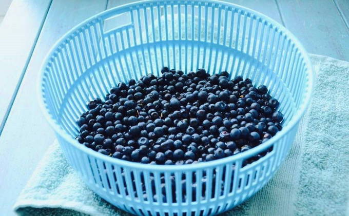 - We meten de benodigde hoeveelheid blauwe bessen af. We sorteren het, spoelen het voorzichtig af onder water en laten het vervolgens volledig drogen.