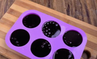 - Kook de bosbessen 3 minuten en giet het mengsel in de vormpjes.