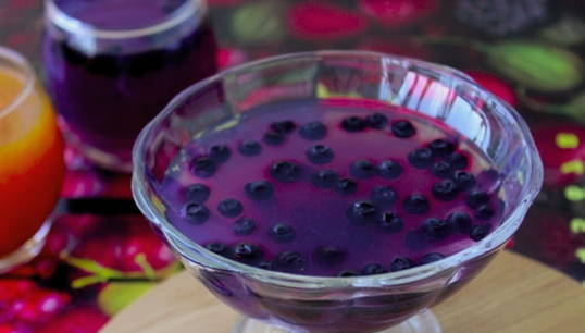 Zelfgemaakte aromatische gelei wordt vaak gemaakt van bosbessen en gelatine. Een lichte traktatie kan worden geserveerd als een op zichzelf staand dessert of als aanvulling op andere producten.