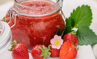 Door de toevoeging van gelatine krijgt de consistentie van aardbeienpuree een zeer delicate vorm, de gelei smelt letterlijk in je mond. Het kan worden gebruikt als een halffabrikaat om te bakken of gegeten met thee of koffie, uitgespreid op een broodje.