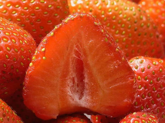 - Spoel de aardbeien goed uit het zand, sorteer en verwijder de stengels en bladeren. Grote bessen kunnen gehalveerd worden.