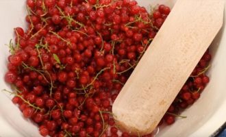 - Sorteer de rode aalbessen zorgvuldig en verwijder kleine rommel, bladeren en alle twijgen.