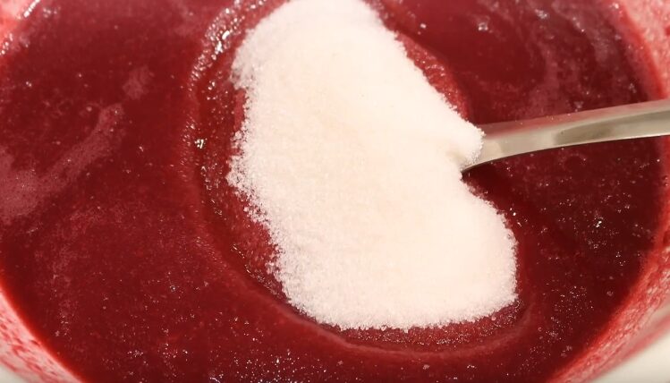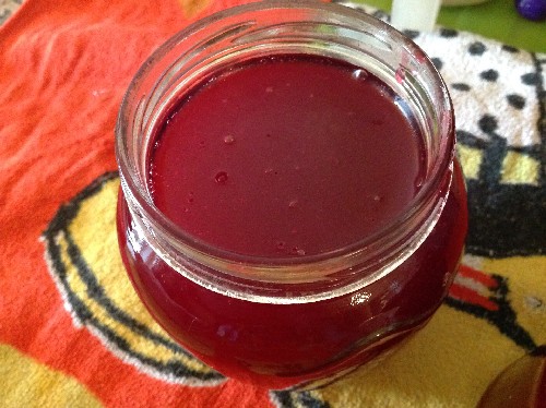 - Giet de resulterende bessenpuree met suiker in een jampot en laat een uur op normale huistemperatuur staan.