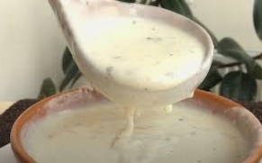 - Bak de bloem apart in een droge koekenpan tot deze donker wordt en voeg daar dan een beetje boter en zure room aan toe. Alles wordt grondig gemengd en op laag vuur gekookt tot het kookt. De saus wordt op smaak gemaakt met peper en zout.