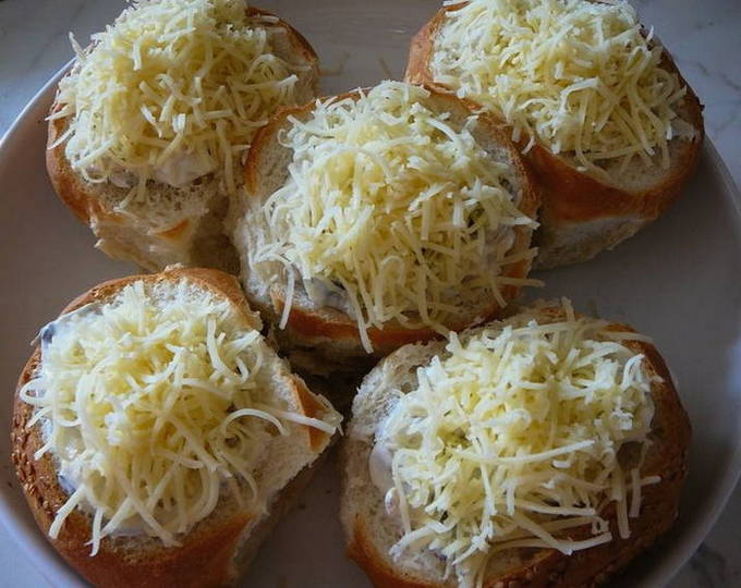 - Strooi de resterende kaas over elk broodje en dek af met de eerder gesneden "deksels" van de broodjes. Zet de stukken 15 minuten in de oven, serveer warm.