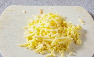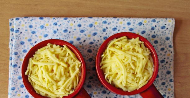 - Rasp de kaas op een middelgrote rasp. Combineer de meeste kaas met zure room.