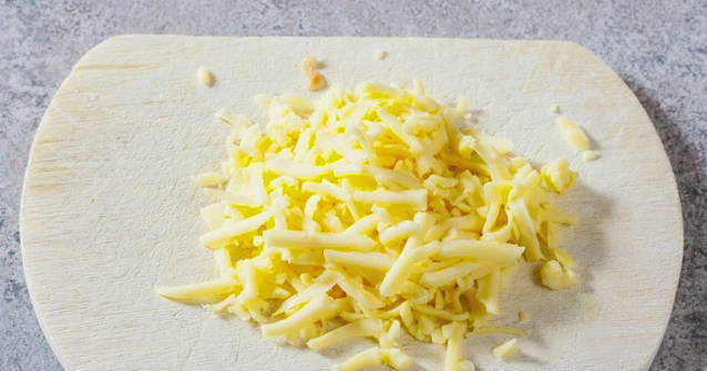 - Rasp de kaas op een middelgrote rasp. Combineer de meeste kaas met zure room.