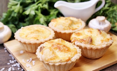 - Leg de gebakken champignons en kip in de tartlets.