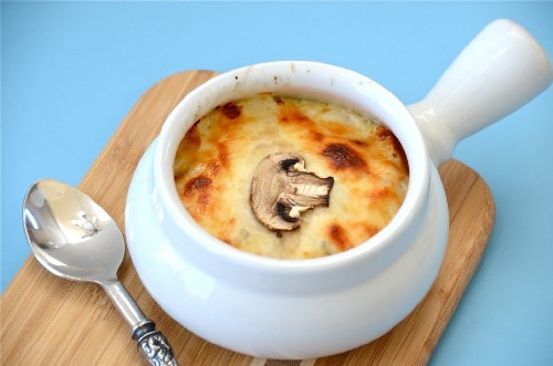 - Julienne met kip en champignons met kaas in de oven