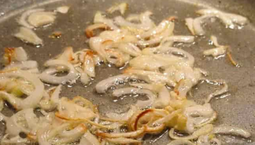 - Bak alles alleen tot de ui transparant is, en niet tot ze goudbruin zijn, anders zal het gerecht bitter smaken.